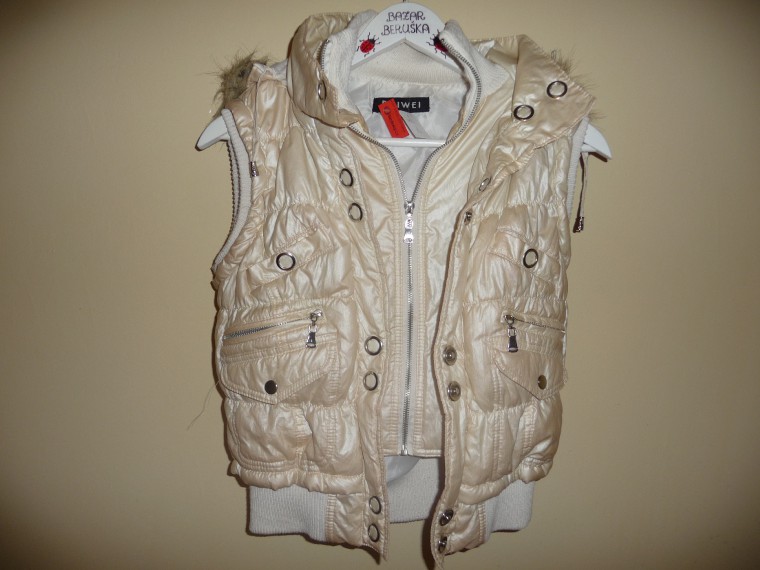 Vesta zlatá, vel. M, délka 50 cm, zapínání na zip i na patenty.